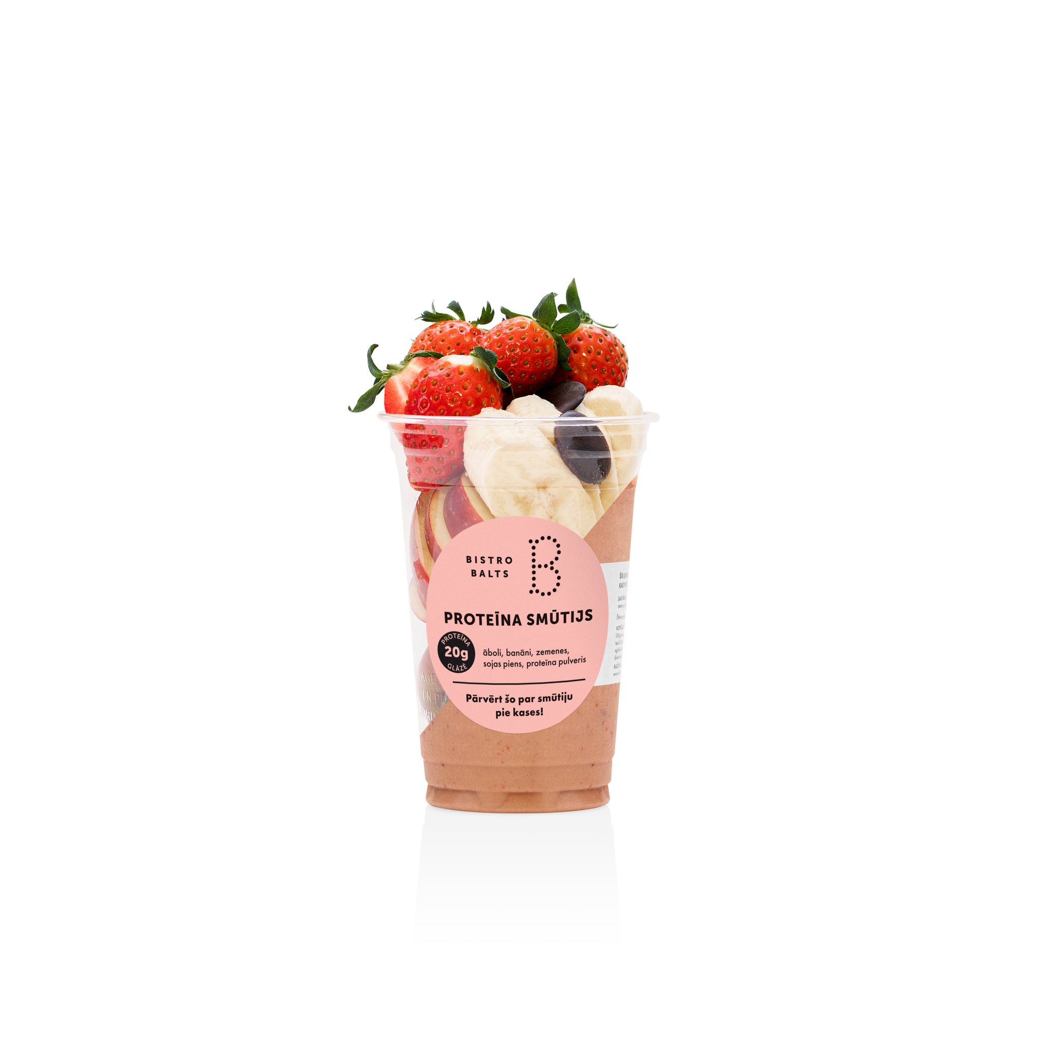 Āboli, banāni, zemenes, sojas piens, vegānisks proteīna pulveris ar šokolādes garšu